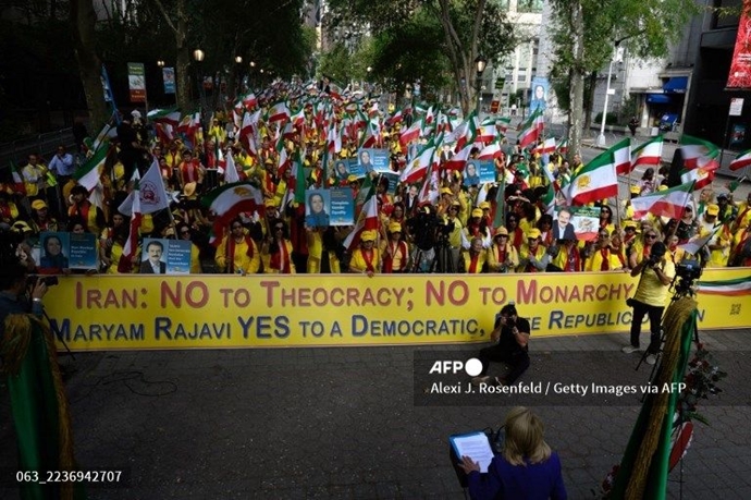 Maryam Rajavi , die gewählte Präsidentin des Nationalen Widerstandsrats Iran (NWRI), lobte in einer Botschaft, die sie den Anwesenden vorlas, die „Beharrlichkeit meiner Landsleute, die sich hier jedes Jahr zum Protest versammeln“, und sagte, dies spiegele den gleichen Geist wider wie die Aufstände im Iran. „Mit Ihrer starken Präsenz vor den Vereinten Nationen sieht die Welt, dass Sie das iranische Volk vertreten. Sie sind die Stimme des iranischen Volkes vor den Vereinten Nationen, nicht der Präsident des Obersten Führers“, erklärte sie.