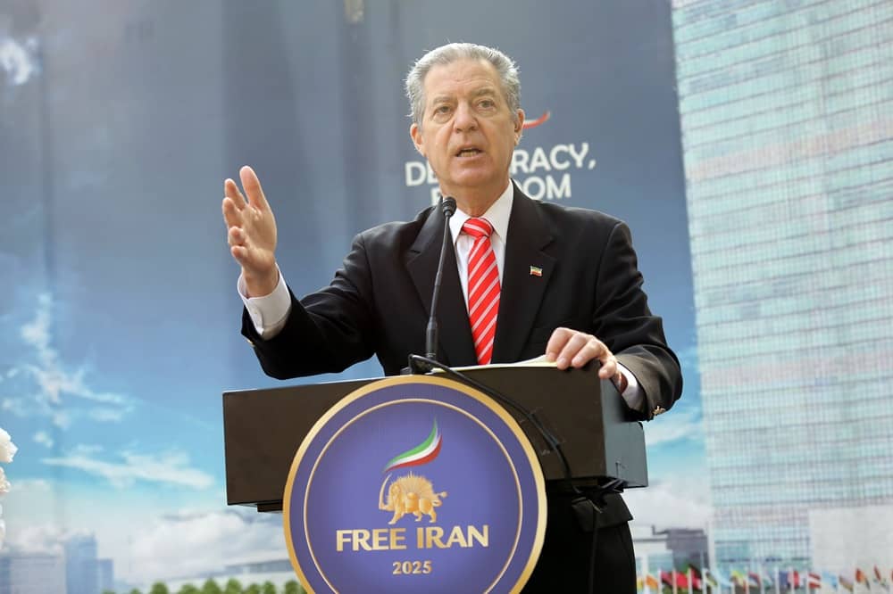 „Dieses Regime exportiert Terrorismus und zerstört das zivile Leben “, sagte er. „Der Nationale Widerstandsrat des Iran kann und wird diesem Auftrag nachkommen und hat sich jahrzehntelang darauf vorbereitet, geforscht, ausgebildet und geübt.“ Er lobte den von Frau Rajavi vorgelegten Plan und betonte: „An die über 90 Millionen Bürger des Iran: Sie verdienen diesen Wandel, und Sie verdienen ihn so schnell wie möglich.“